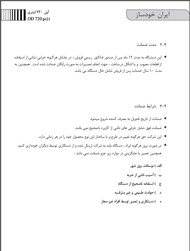 مشخصات محصول آون 720 لیتری پروگرامر تمام استیل مدل OD 720p