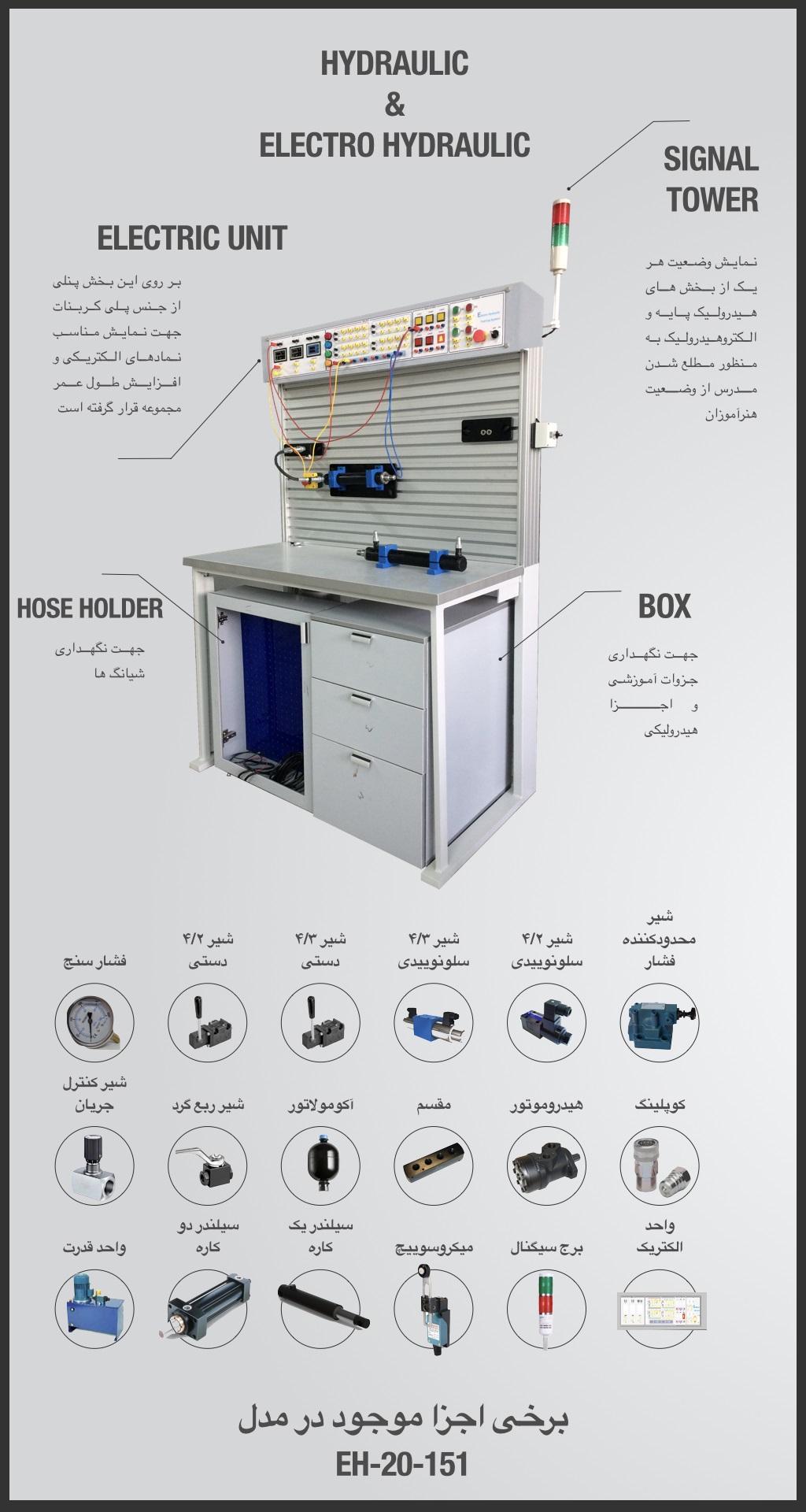 مشخصات محصول مجموعه آموزشی هیدرولیک و الکترو هیدرولیک مدل ٍEH-20-151