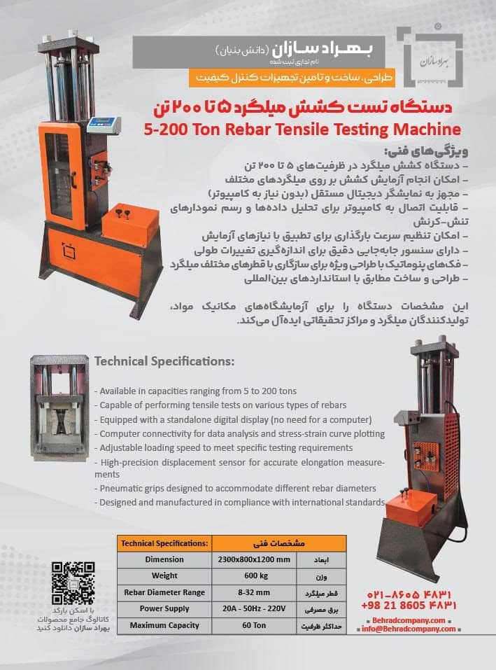 مشخصات محصول دستگاه کشش میلگرد 60 تن