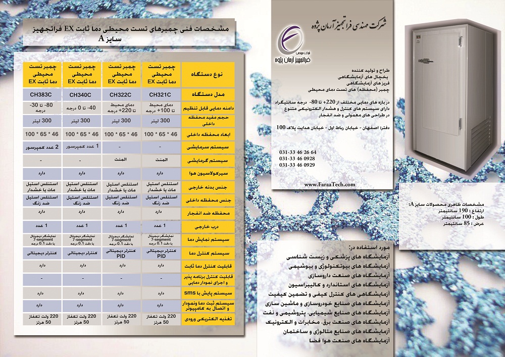 مشخصات محصول محفظه تست محیطی دما ثابت ضدانفجار مدل CH383C
