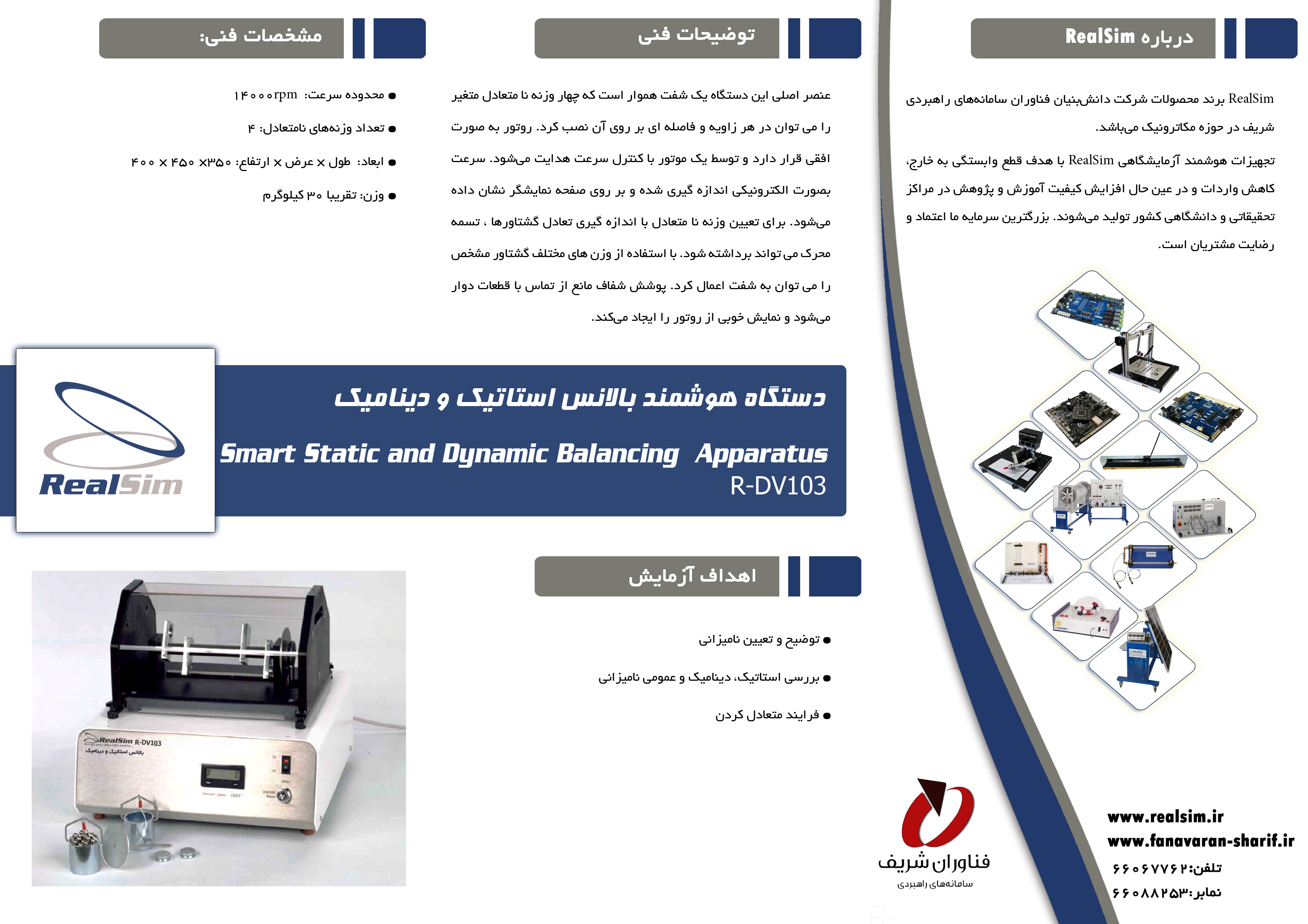 مشخصات محصول دستگاه هوشمند بالانس استاتیک و دینامیک مدل R-DV103 در سومین نمایشگاه تجهیزات
