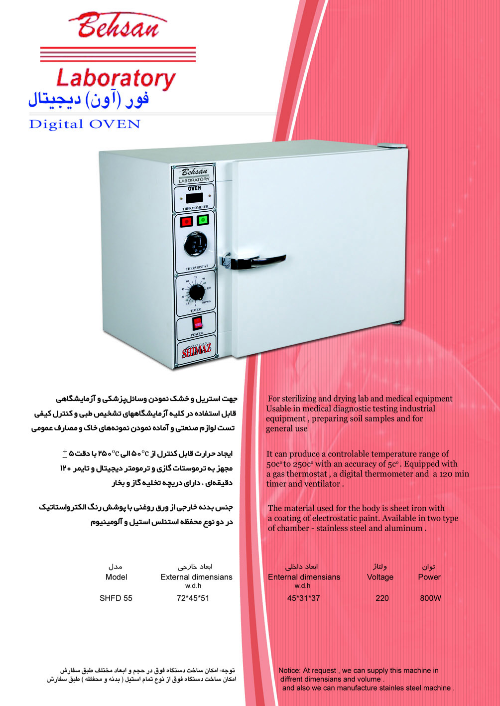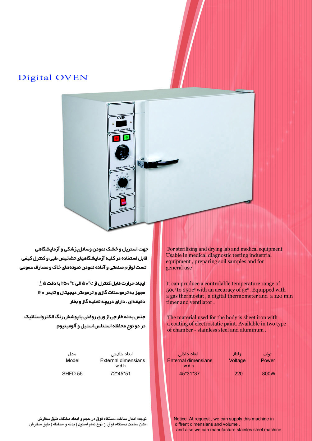 مشخصات محصول استریلیزاتور فور مدل O S 55 در چهارمین نمایشگاه تجهیزات