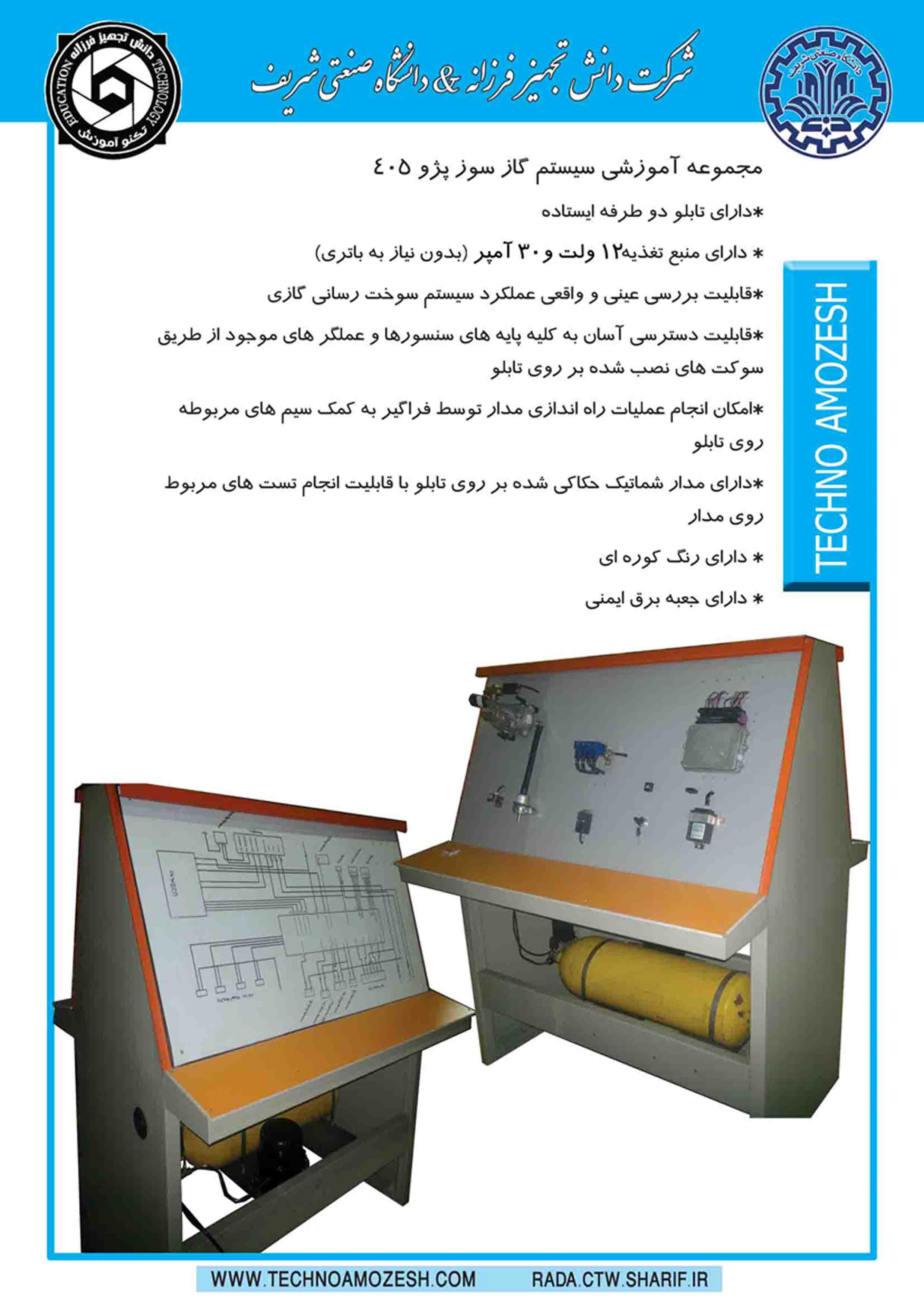 مشخصات محصول مجموعه آموزشی سیستم گاز سوز پژو 405 مدل گاز405 در ششمین نمایشگاه تجهیزات