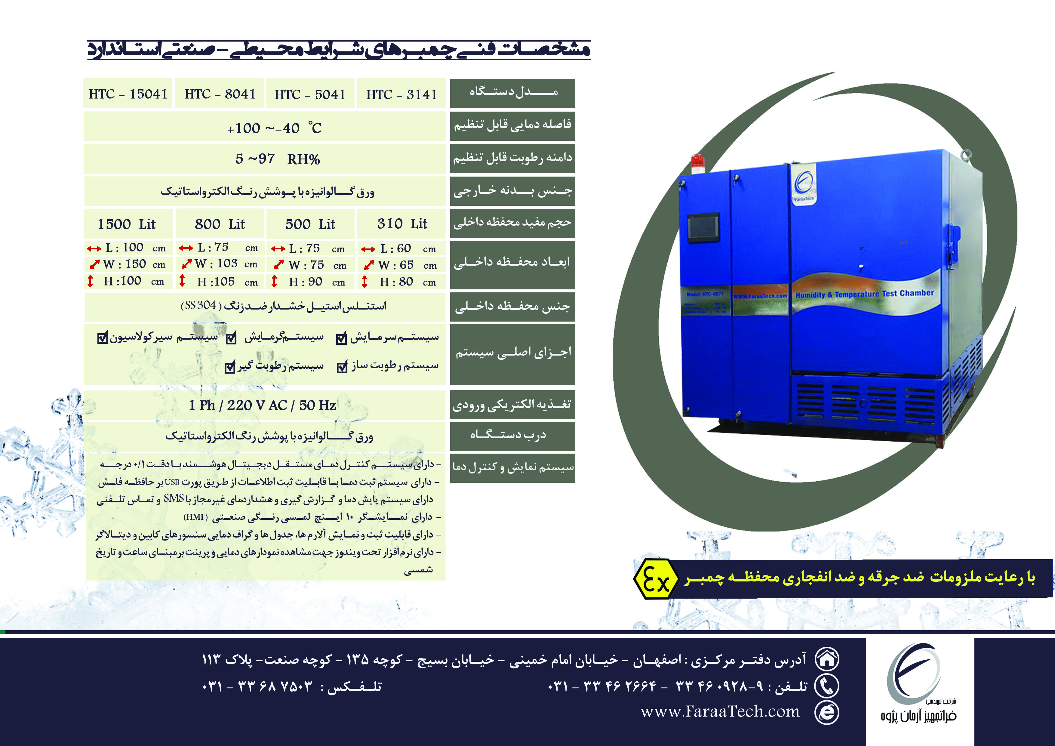 مشخصات محصول چمبر تست شرایط محیطی ( دما و رطوبت ) مدل HTC-15041 در ششمین نمایشگاه تجهیزات