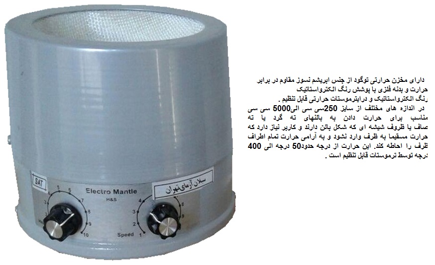 در بسیاری از آزمایشها نیاز به حرارت دادن ، یک امر مهم و اساسی است و در بسیاری از موارد این حرارت نیز تعریفهای بخصوصی دارد یکی از تعریفهای حرارت دادن ، و نحوه آن در حرارت دادن مثلا به بالنها است . ظروف شیشه ای گرد که انتهای آن یا صاف است و میتواند روی سطح صاف قرار بگیرد و یا ته ظرف دارای انحنا استو نیمگرد و نمیتوان آنرا روی سطح صاف قرار داد و به همین صورت ( در هر دو مدل ) باید فقط انتها و کناره های ظرف حرارت یکنواختی را ببیند و در شرایط یکسان و یکنواختی همه ظرف گرم شود این گرما باید قابل کنترل باشد و به همین منظور این دستگاه به گونه ای طراحی شده که اینگونه ظروف را بسته به سایز و اندازه آنها ( 250سی سی الی 5 لیتری ) درون خود جا داده و با رویه المنت حرارتی از جنس ابریشم نسوز و مقاوم در برابر حرارت که از شکستن ظروف نیز جلوگیری میکند به ظروف ( بالن ها ) حرارت میدهد . این حرارت قابل تنظیم است و به صورت ترموستاتیک قطع و وصل میشود . سیستم دارای همزن مغناطیسی ( مگنت ) مسباشد و متنند یک هیتر همزن مغناطیسی عمل میکند و بالنهائی که داخل مخنزن قرار دارند علاوه بر گرم شدن میتوانند از این همزن نیز استفاده کنند