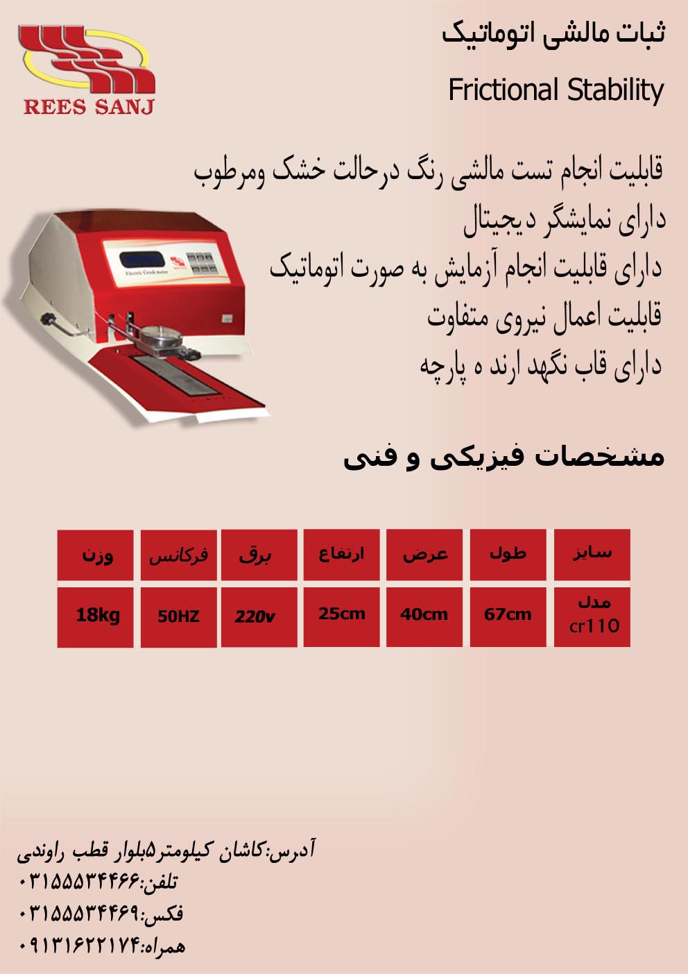 مشخصات محصول ثبات مالشی اتوماتیک رنگ