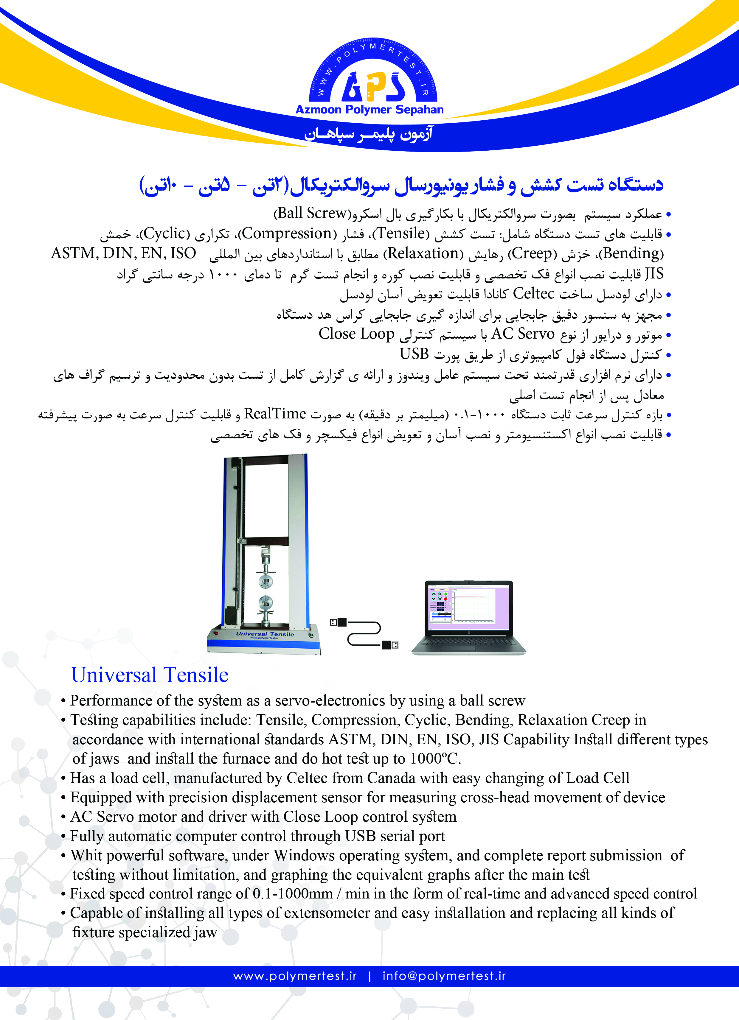 مشخصات محصول دستگاه تست کشش و فشار یونیورسال سروو الکتریکال 10 تن