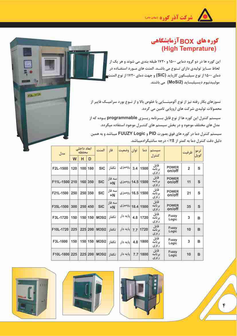 مشخصات محصول کوره باکسی دما بالا از نوع رو میزی مدل F3L-1720/D در هشتمین نمایشگاه تجهیزات