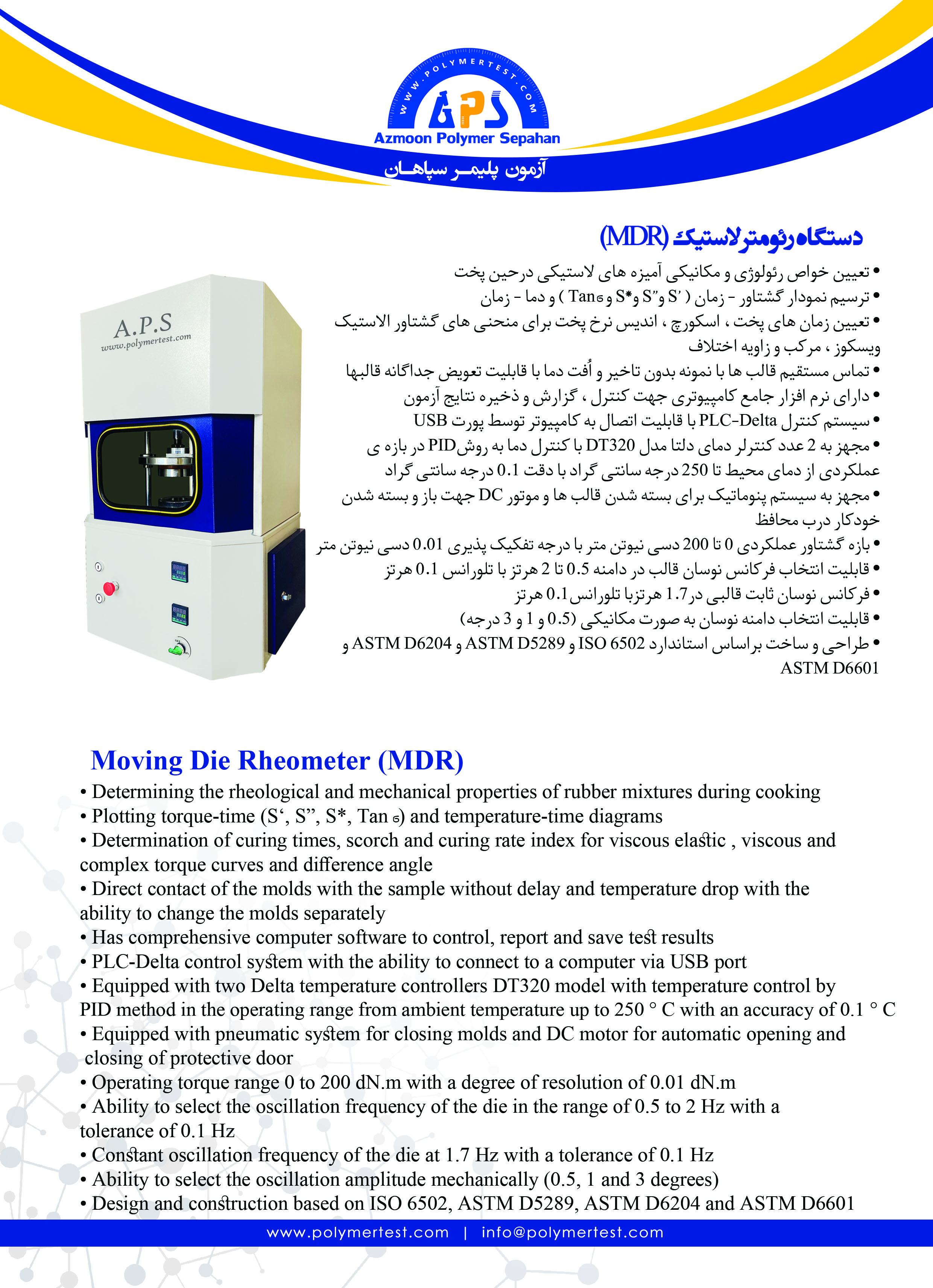 مشخصات محصول دستگاه رئومتر لاستیک مدل 250 درجه در نهمین نمایشگاه تجهیزات