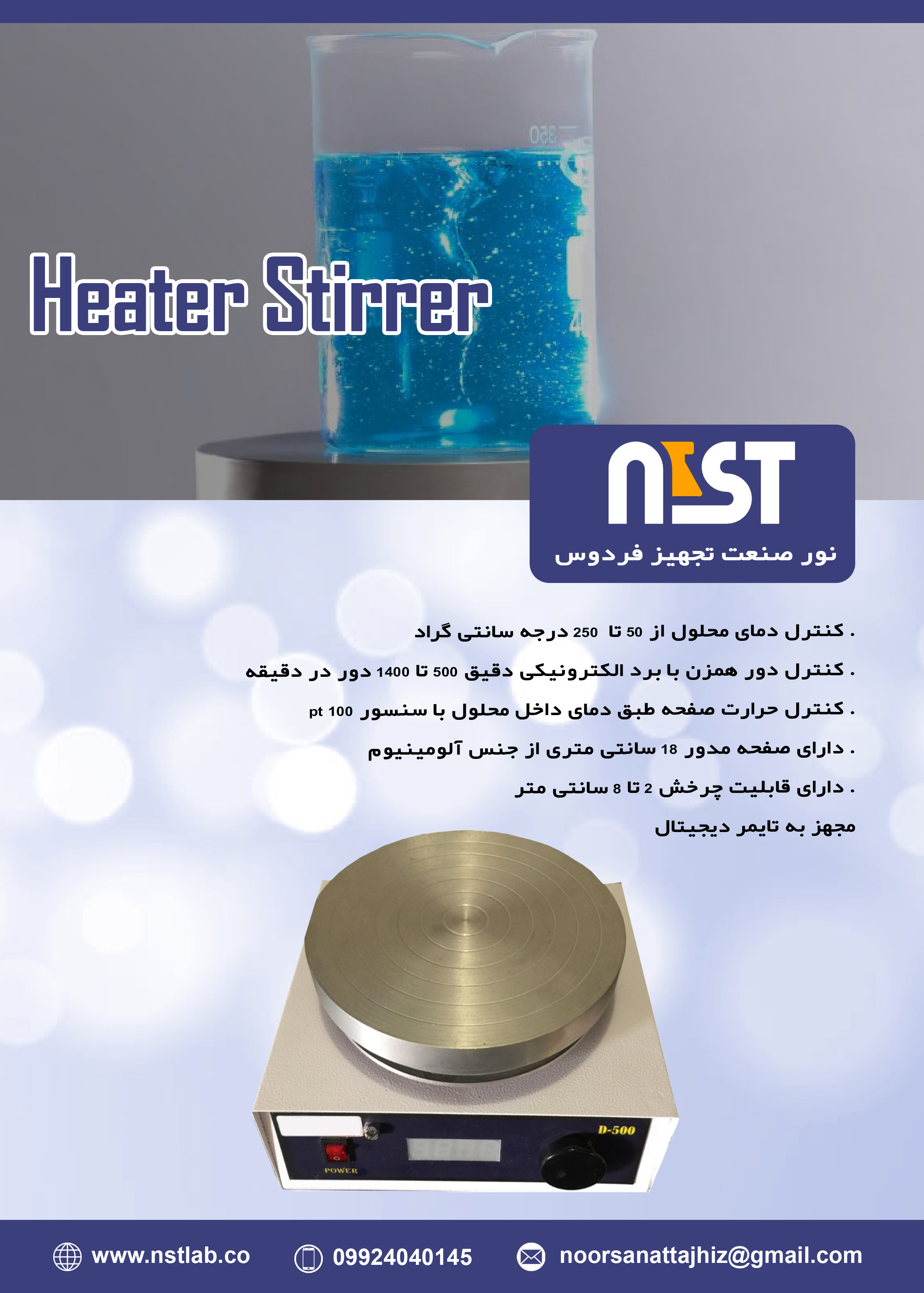 مشخصات محصول هیتر استیرر مدل NST S T I R R E R در نهمین نمایشگاه تجهیزات