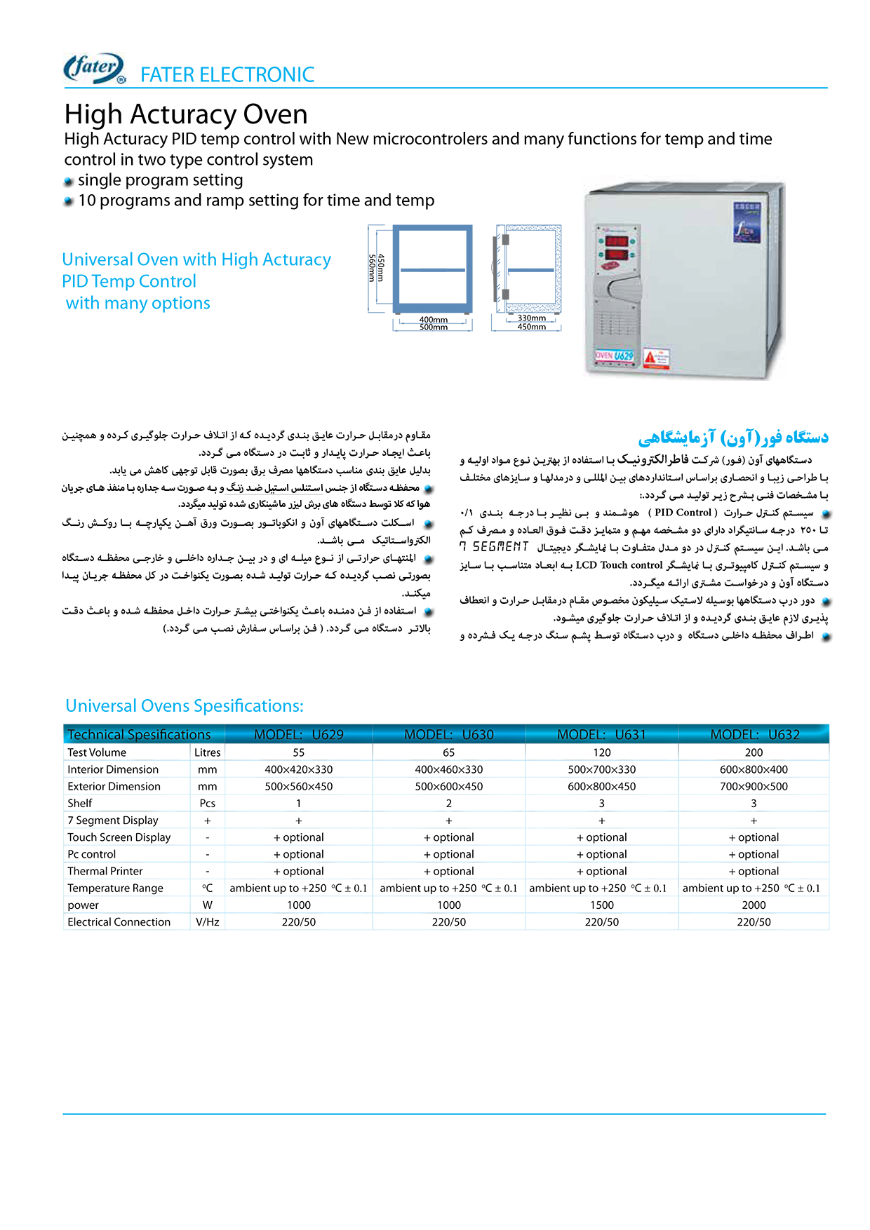 مشخصات محصول آون 55 لیتری با کنترل دقیق دیجیتال هوشمند (فور) با محفظه داخلی استنلس استیل مدل U629 در نهمین نمایشگاه تجهیزات