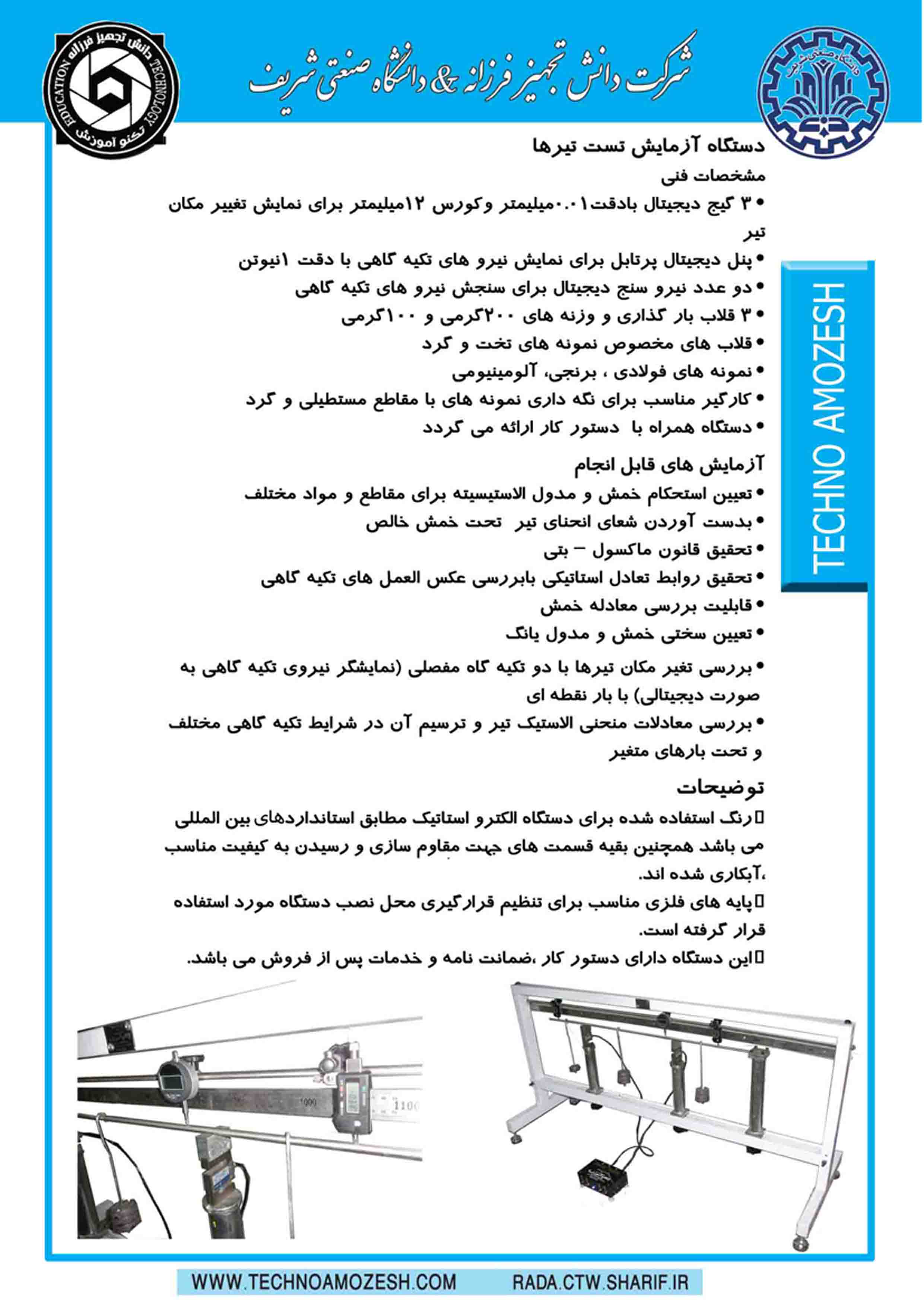 -کیت، نرم افزار و آزمایشگاه آموزشی-مجموعه آزمایشهای عمومی و سامانه های کنترل فرایند و آموزشی-مجموعه آزمایش های آموزشی خاک، مصالح، ساختمان و سازه-مجموعه آزمایشگاه آموزشی مقاومت مصالح-